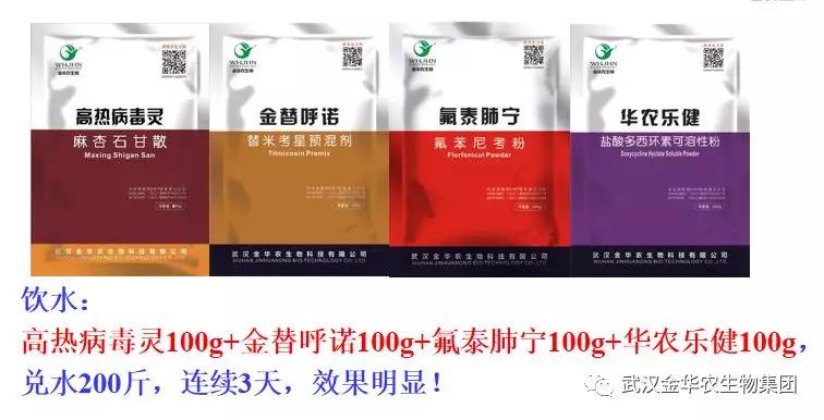 1、【白天控水】,集中4小時內(nèi)喝完,飲水:高熱病毒靈100克+金替呼諾100克+氟泰肺寧100克+華農(nóng)樂健100克,兌水200斤,連續(xù)3天,效果明顯!