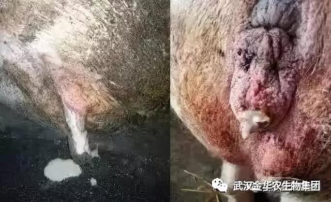 母豬陰部炎癥流白、濃性分泌物、石灰尿