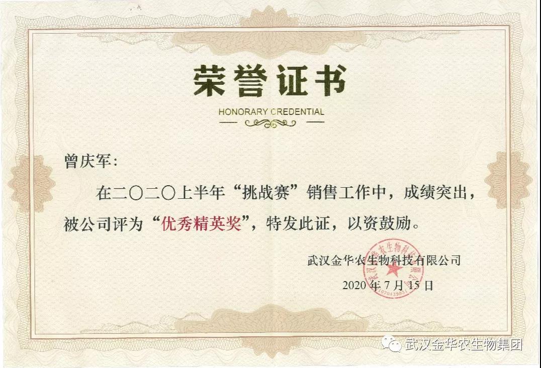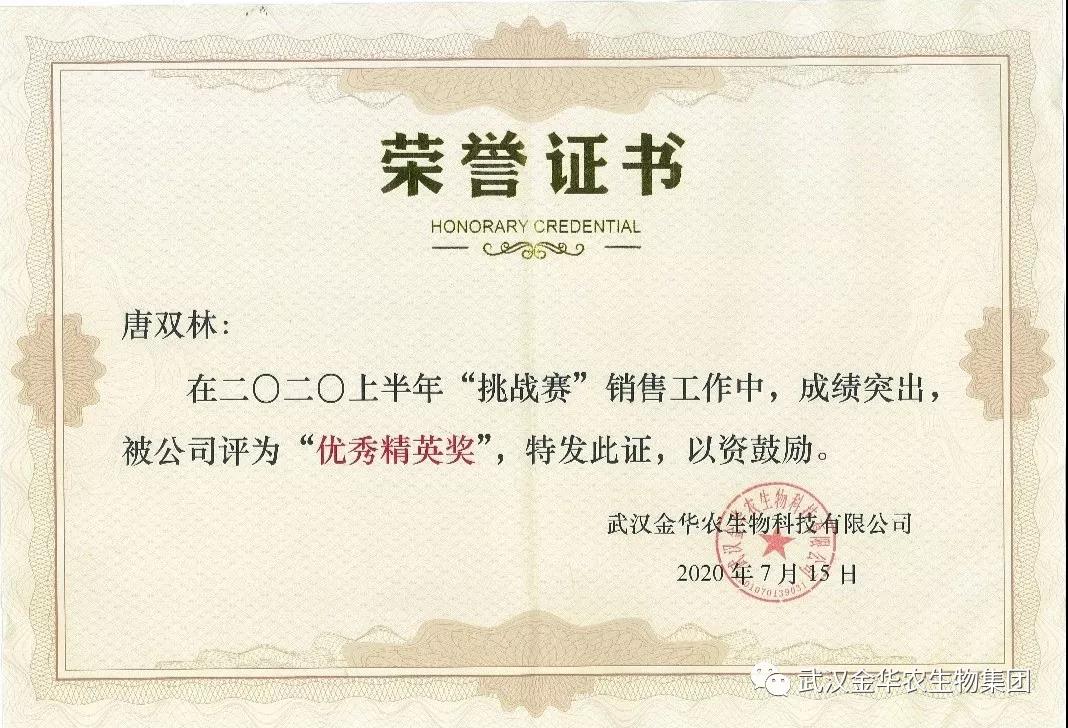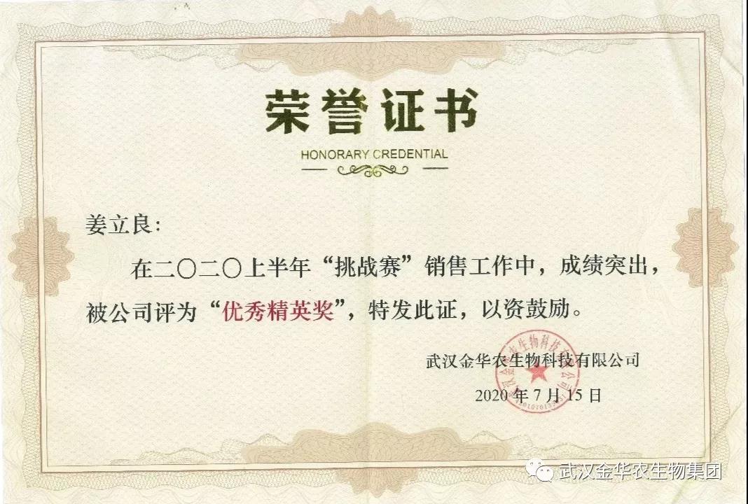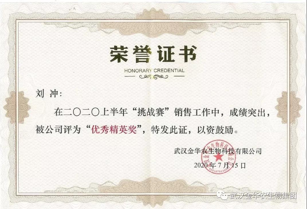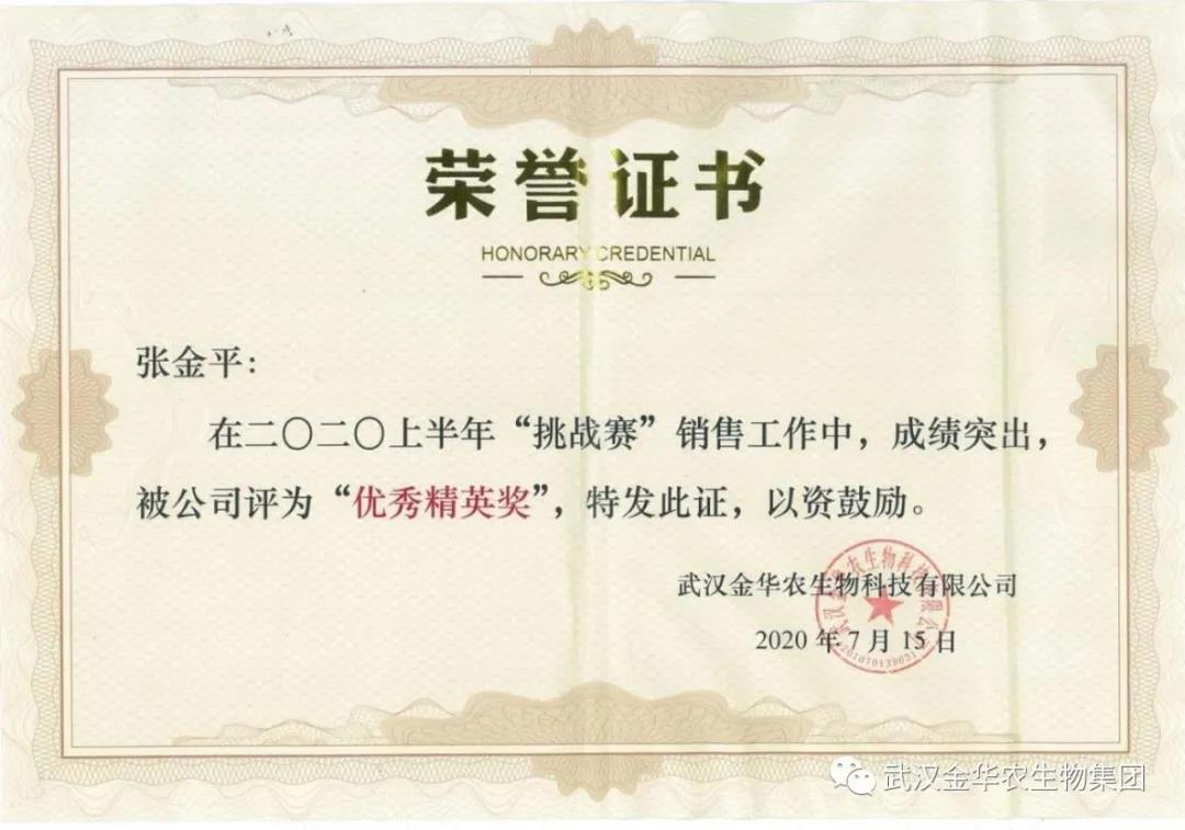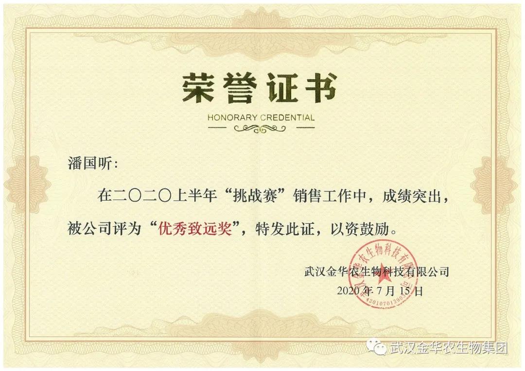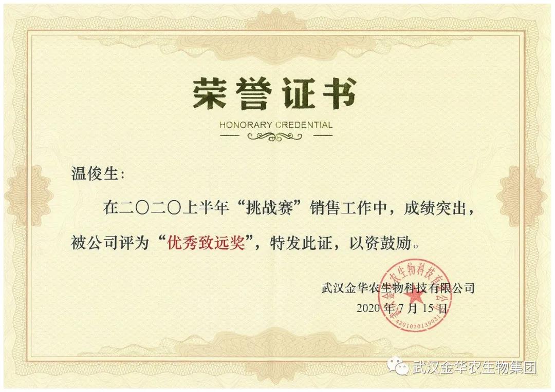 武漢金華農(nóng)生物2020年“挑戰(zhàn)賽”獲獎名單公布
