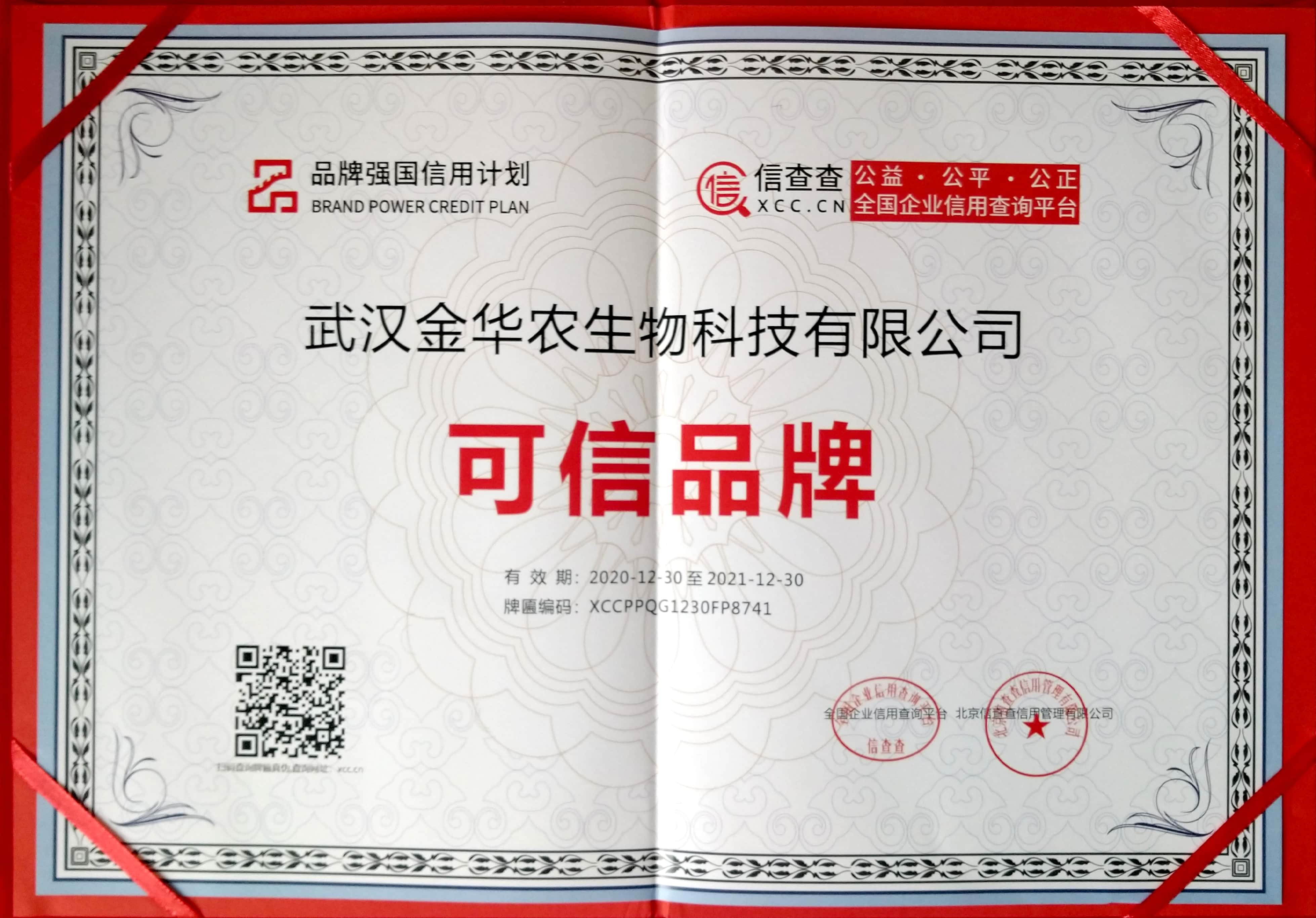 武漢金華農(nóng)榮獲“可信品牌”稱號
