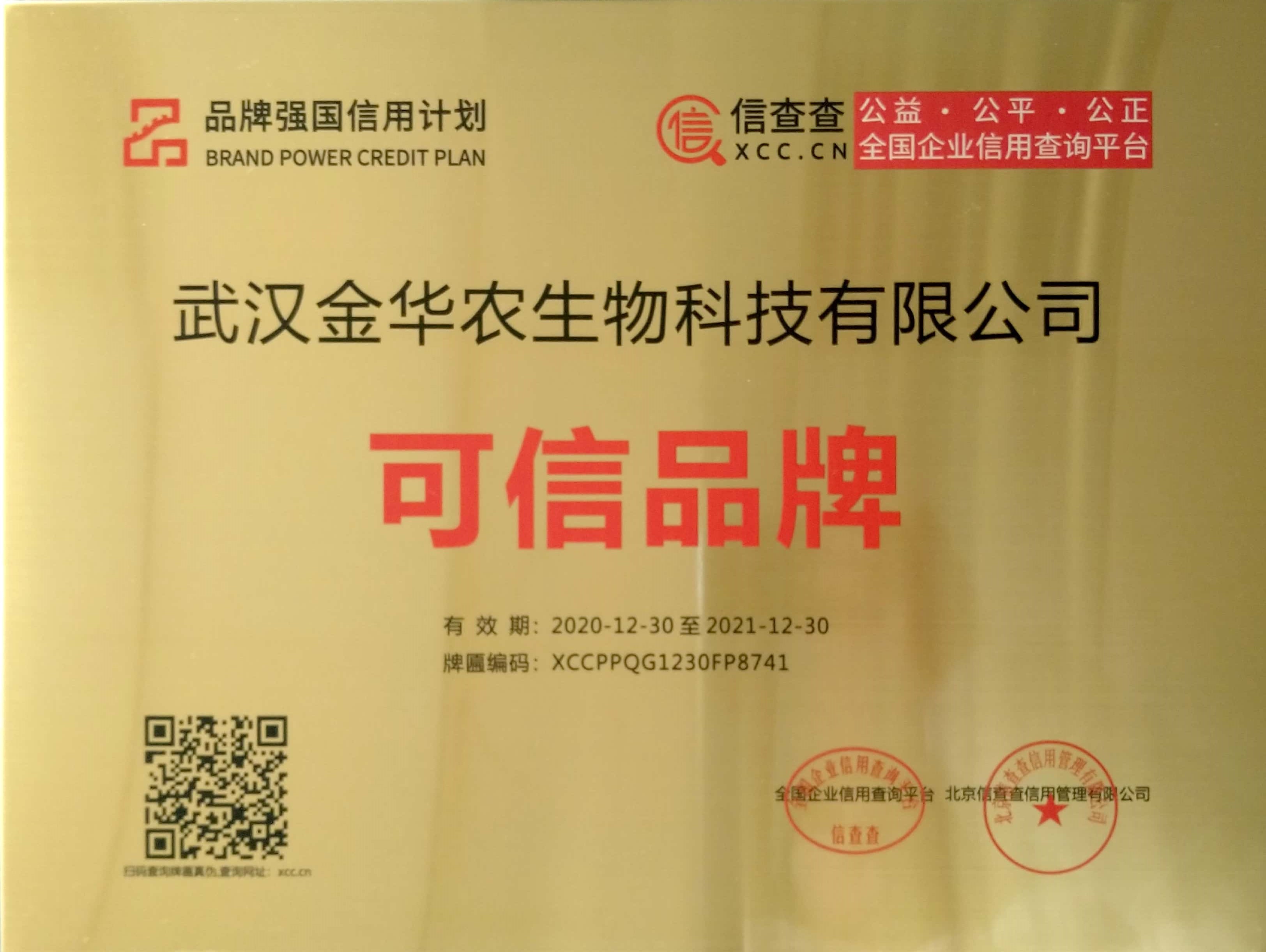 2021年1月11日,新年伊始,萬象更新,奮發(fā)圖強(qiáng),再接再勵!武漢金華農(nóng)生物也迎來新年諸多利好消息,新年第一個月“元月份”業(yè)績突飛猛進(jìn),銷量翻番;公司新研發(fā)的新產(chǎn)品配方陸續(xù)完成基礎(chǔ)工作,國家申報工作也進(jìn)一步推進(jìn);公司憑借長期以來誠信為本、誠信經(jīng)營、重合同守信譽(yù),產(chǎn)品質(zhì)量第一,技術(shù)服務(wù)第一的經(jīng)營理念,在社會發(fā)展、助農(nóng)扶貧、抗擊疫情等領(lǐng)域的持續(xù)投入和杰出表現(xiàn),同時保證經(jīng)營狀態(tài)正常良好,無失信紀(jì)錄、無違法、無負(fù)面輿情等條件,被國家信用平臺、品牌強(qiáng)國計劃評選為“可信品牌”,并被授予“中國可信品牌企業(yè)”榮譽(yù)稱號,在北京隆重舉行視頻授予儀式,新年之初,獲得新的榮譽(yù),開啟新發(fā)展!