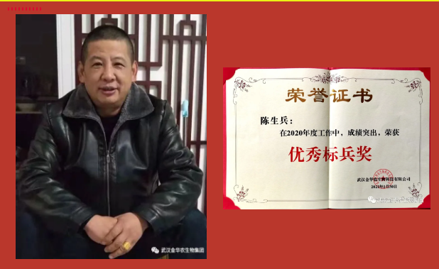? ? 陳生兵在2020年生產(chǎn)工作中,腳踏實地、兢兢業(yè)業(yè),圓滿完成公司各項生產(chǎn)任務(wù),實現(xiàn)生產(chǎn)全年“0”差錯。9年來,無論春夏秋冬、酷暑嚴寒,他始終以高度的責任感,嚴格原材料配比,認真細致落實生產(chǎn)每個環(huán)節(jié),以優(yōu)質(zhì)的產(chǎn)品質(zhì)量,樹公司品牌形象,對公司發(fā)展做出突出貢獻,被評為“優(yōu)秀標兵”。他的敬業(yè)和擔當精神值得全體武漢金華農(nóng)家人學(xué)習(xí)!