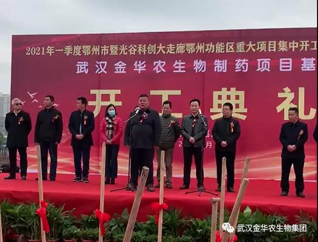 ? ? 春風(fēng)送暖,萬(wàn)象更新。2021年2月27日農(nóng)歷正月十六,武漢金華農(nóng)生物制藥基地作為光谷科創(chuàng)大走廊22個(gè)億元以上重大項(xiàng)目之一,在葛店經(jīng)濟(jì)開(kāi)發(fā)區(qū)隆重奠基開(kāi)工。