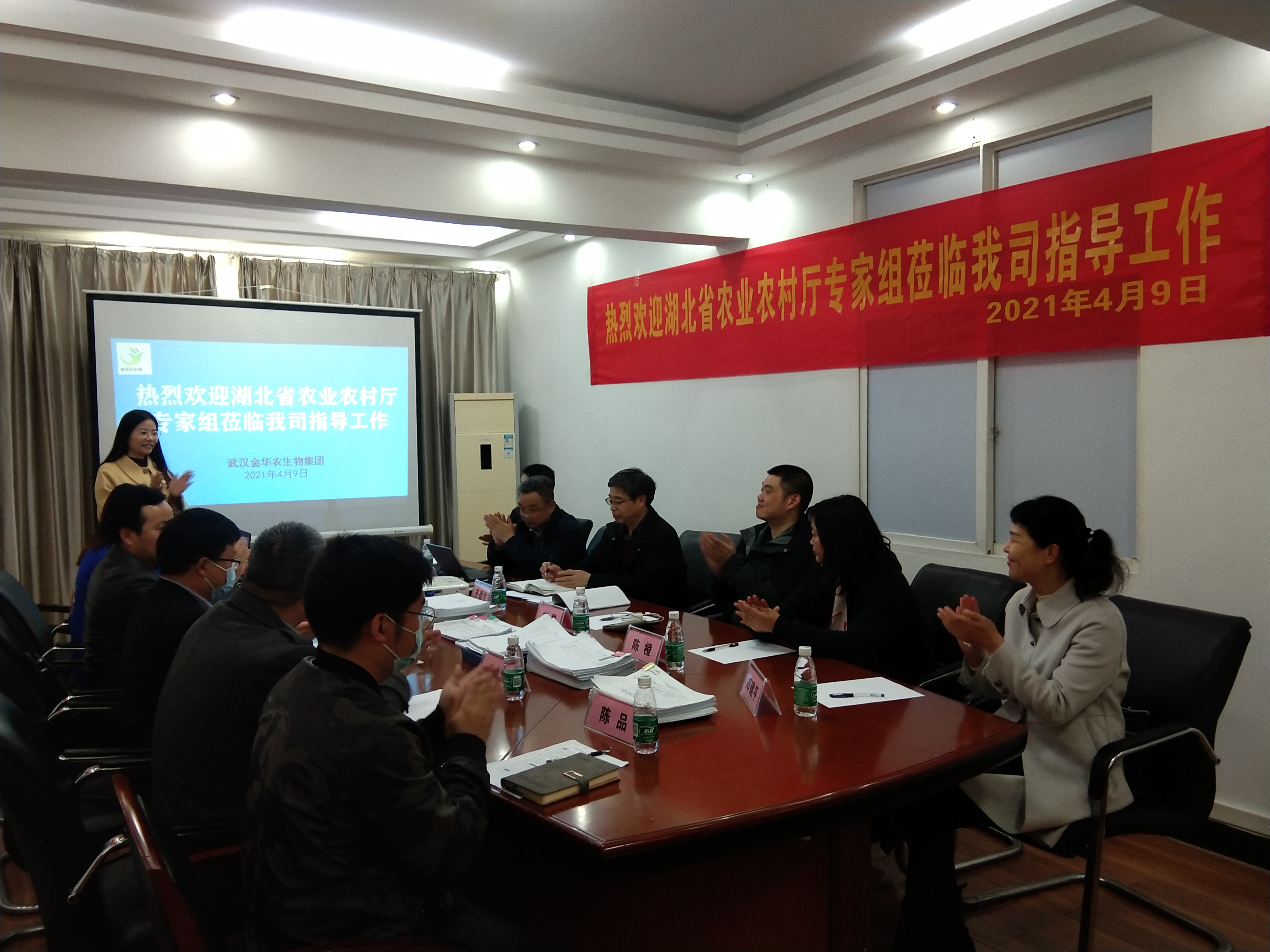 ▲驗(yàn)收通過(guò),湖北省農(nóng)業(yè)農(nóng)村廳領(lǐng)導(dǎo)、武漢金華農(nóng)生物公司領(lǐng)導(dǎo),親切握手,合影留念
