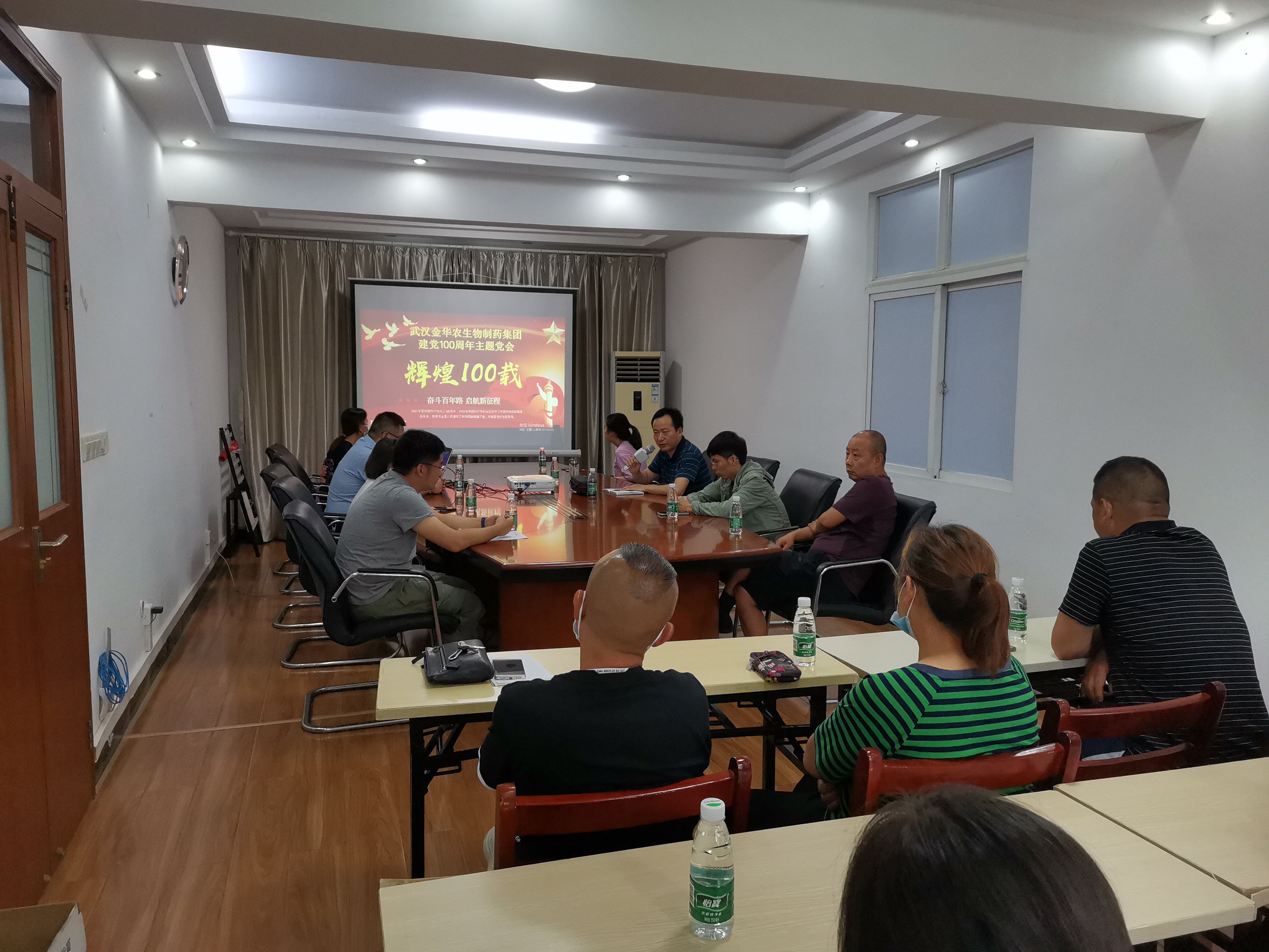 ? ? 為熱烈慶祝中國共產(chǎn)黨成立100周年,進一步推進黨史學(xué)習(xí)教育走深走實,7月1日,武漢金華農(nóng)生物集團于華中農(nóng)業(yè)大學(xué)科技產(chǎn)業(yè)樓三樓會議室舉行慶祝中國共產(chǎn)黨成立100周年“輝煌100載”主題黨史學(xué)習(xí)大會。