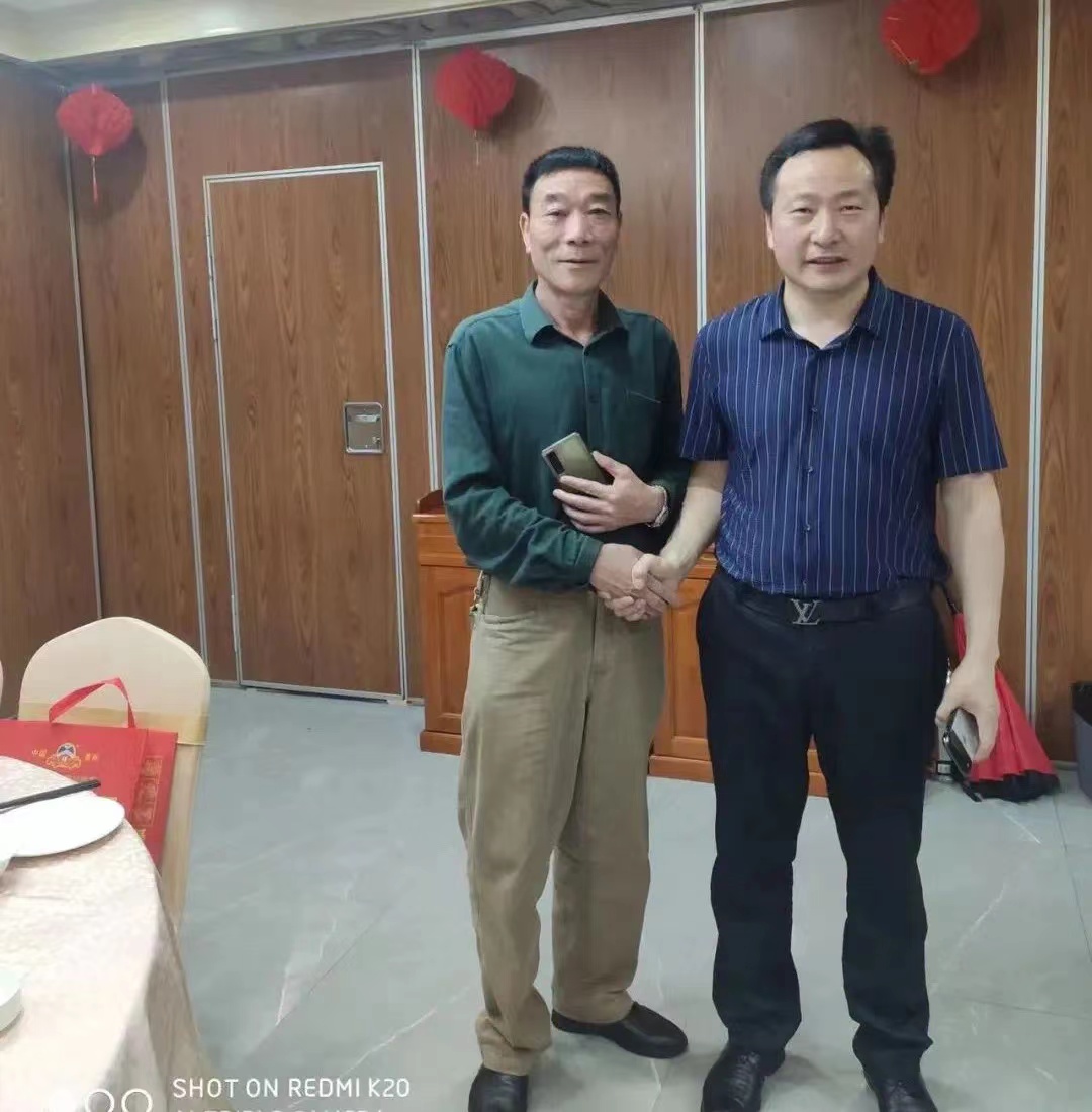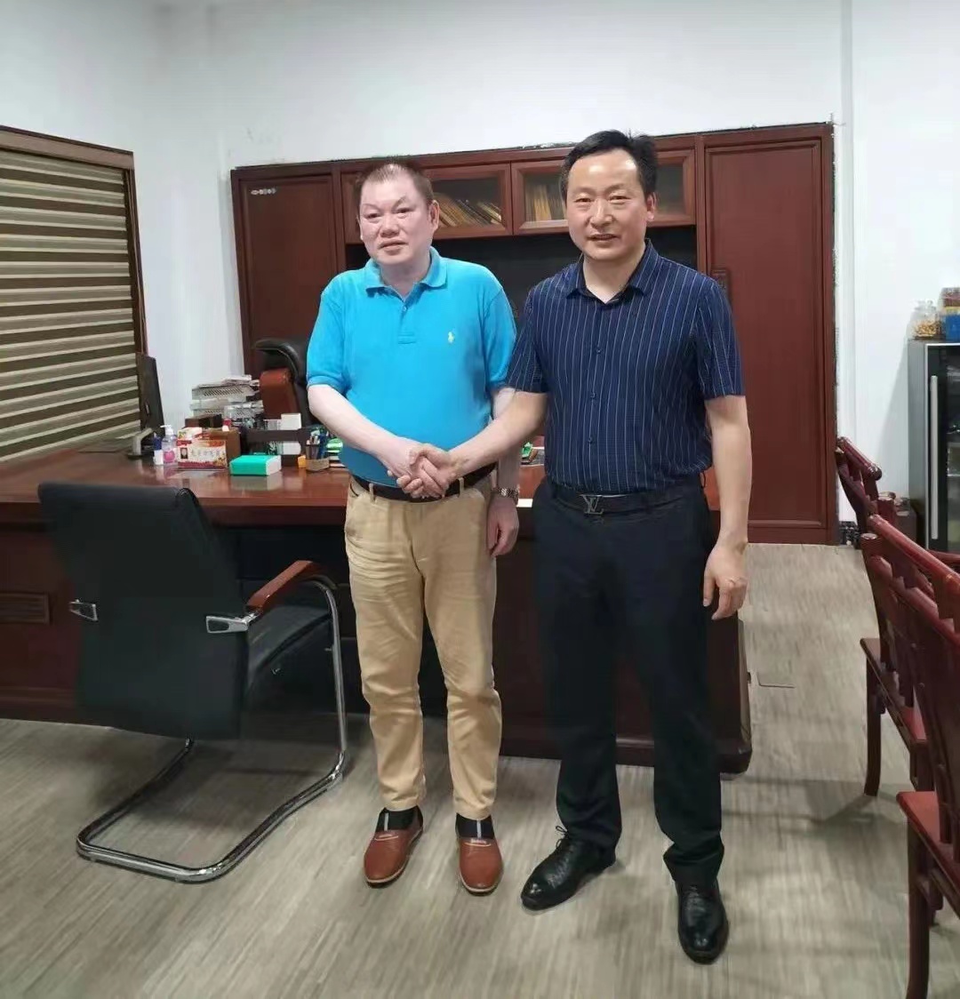 ▲富勝總經(jīng)理與養(yǎng)殖集團(tuán)丁總握手合影留念
