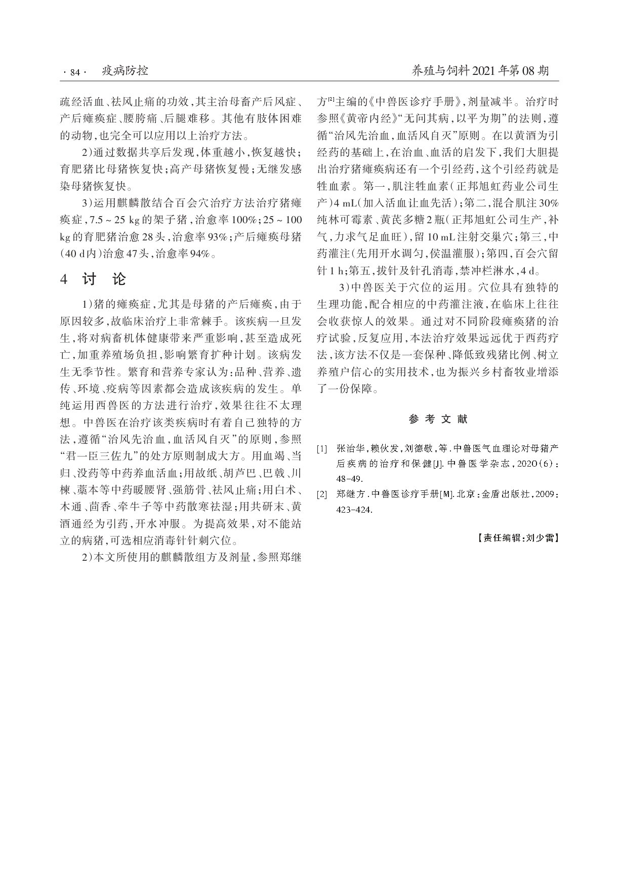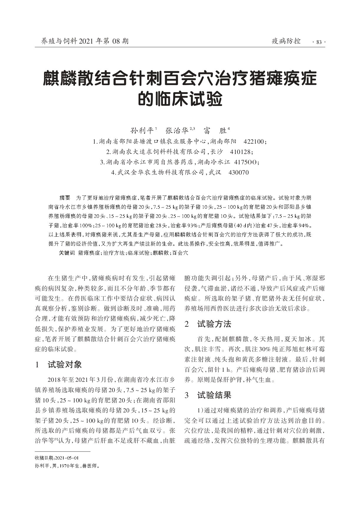 麒麟散結合針刺百會穴治療豬癱瘓癥的臨床試驗