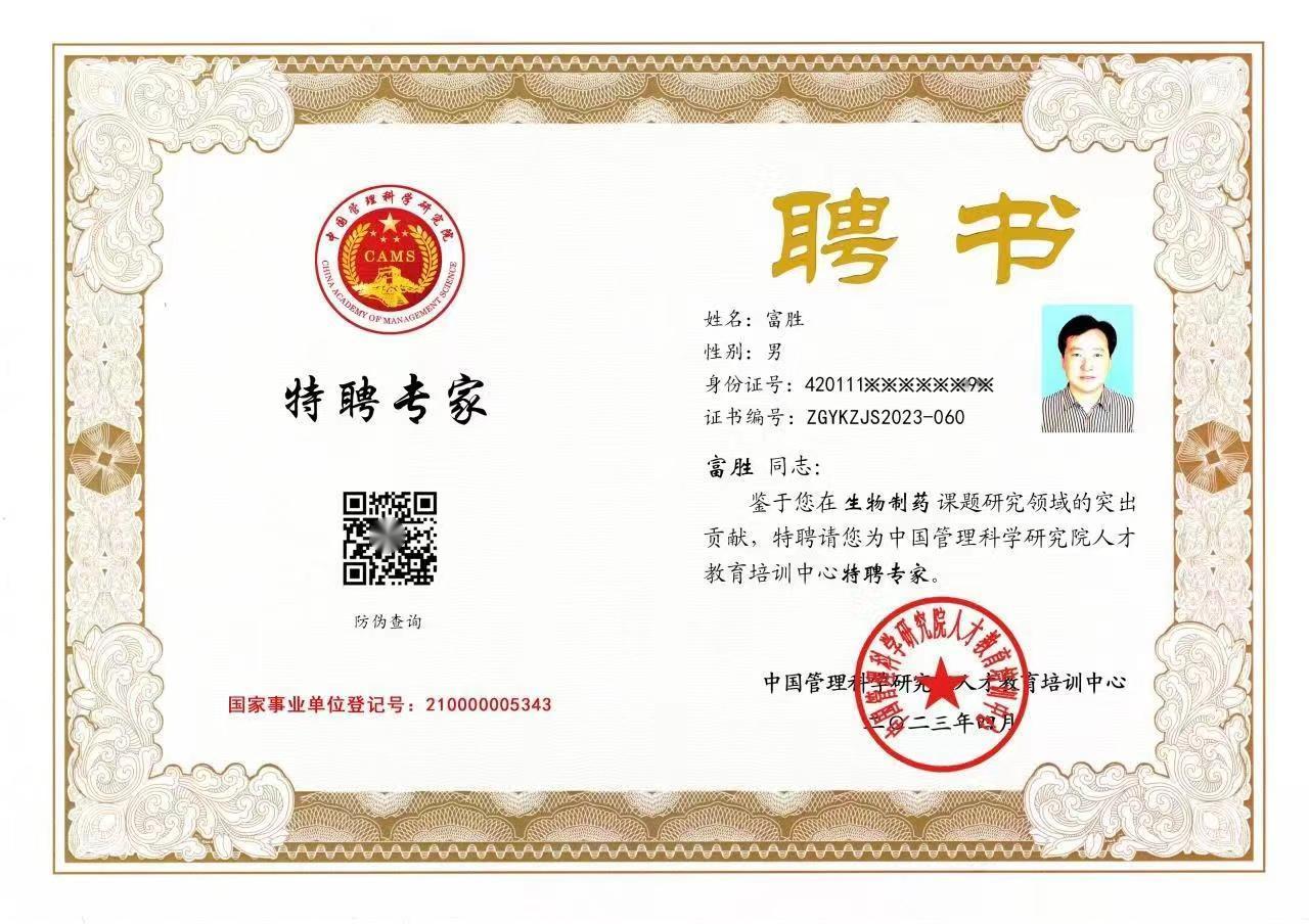 中國科學(xué)研究院“生物制藥”榮譽(yù)證書
