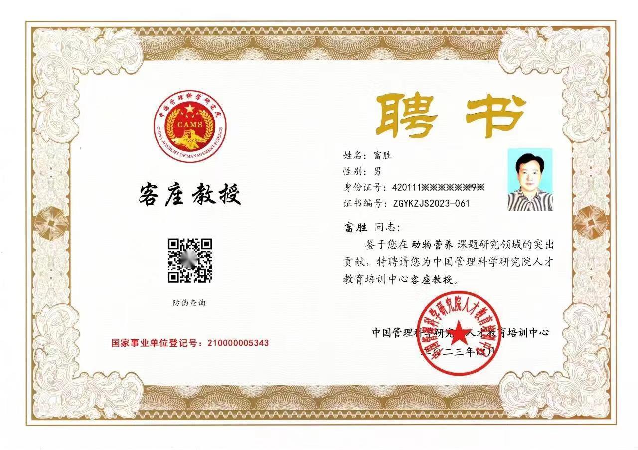 中國(guó)科學(xué)研究院“動(dòng)物營(yíng)養(yǎng)”榮譽(yù)證書(shū)