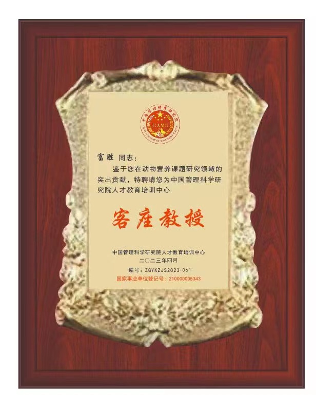 中國科學研究院“動物營養(yǎng)”榮譽證書