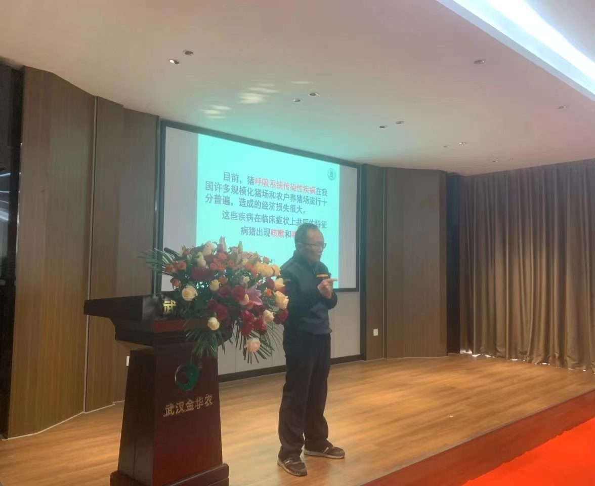 圖一為:武漢金華農(nóng)研發(fā)導(dǎo)師、華中農(nóng)業(yè)大學(xué)動(dòng)醫(yī)專家、博士生導(dǎo)師姚寶安教授非洲豬瘟防控專題培訓(xùn)中