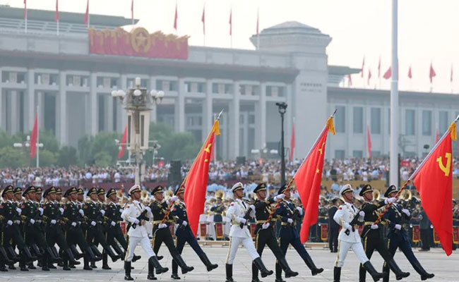 ? ? ? 上午9時(shí),閱兵儀式正式拉開(kāi)帷幕。伴隨著雄壯的國(guó)歌奏響,全場(chǎng)肅立行注目禮,每個(gè)人心中涌動(dòng)著難以抑制的激動(dòng)與豪情。受閱部隊(duì)步伐鏗鏘、整齊劃一地通過(guò)檢閱臺(tái),踏出鋼鐵洪流般的磅礴氣勢(shì);一批批高精尖武器裝備陸續(xù)亮相,戰(zhàn)車(chē)轟鳴、大地微顫,盡顯國(guó)家科技強(qiáng)軍的力量;空中梯隊(duì)呼嘯掠過(guò)蒼穹,每一幀畫(huà)面都凝聚著一個(gè)大國(guó)不容置疑的威嚴(yán)。大家認(rèn)真觀看,心潮澎湃,為祖國(guó)的強(qiáng)大實(shí)力和國(guó)防建設(shè)的輝煌成就而備感自豪。