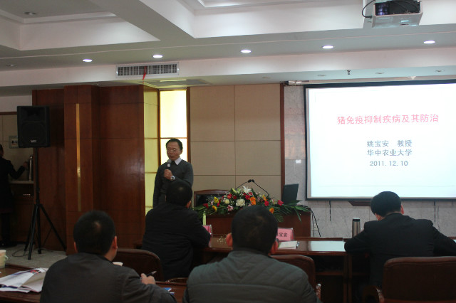 “脫口而就、深入淺出,這就是博導的功底!”12月10日,剛聽完公司豬病技術顧問姚寶安博導的講座,武漢金華農(nóng)生物公司總經(jīng)理助理黃凡不由自主的發(fā)出了稱贊:“我是學企業(yè)管理的,也想了解一些專業(yè)知道方便跟大家交流,原本以為這樣高深專業(yè)的課程很枯燥難懂,沒想到姚教授的講課竟這樣精彩,連我這個外行都聽得津津有味,怪不得同事們直呼受益匪淺!”