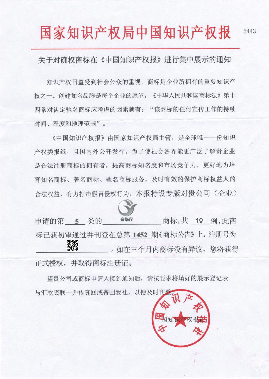 7月22日, 武漢金華農生物喜獲國家工商總局頒發(fā)“馳名商標”認證。經國家知識產權局授權,中國知識產權報、中國商報社聯(lián)合對武漢金華農生物品牌戰(zhàn)略規(guī)劃、馳名商標事項等進行專題報道。