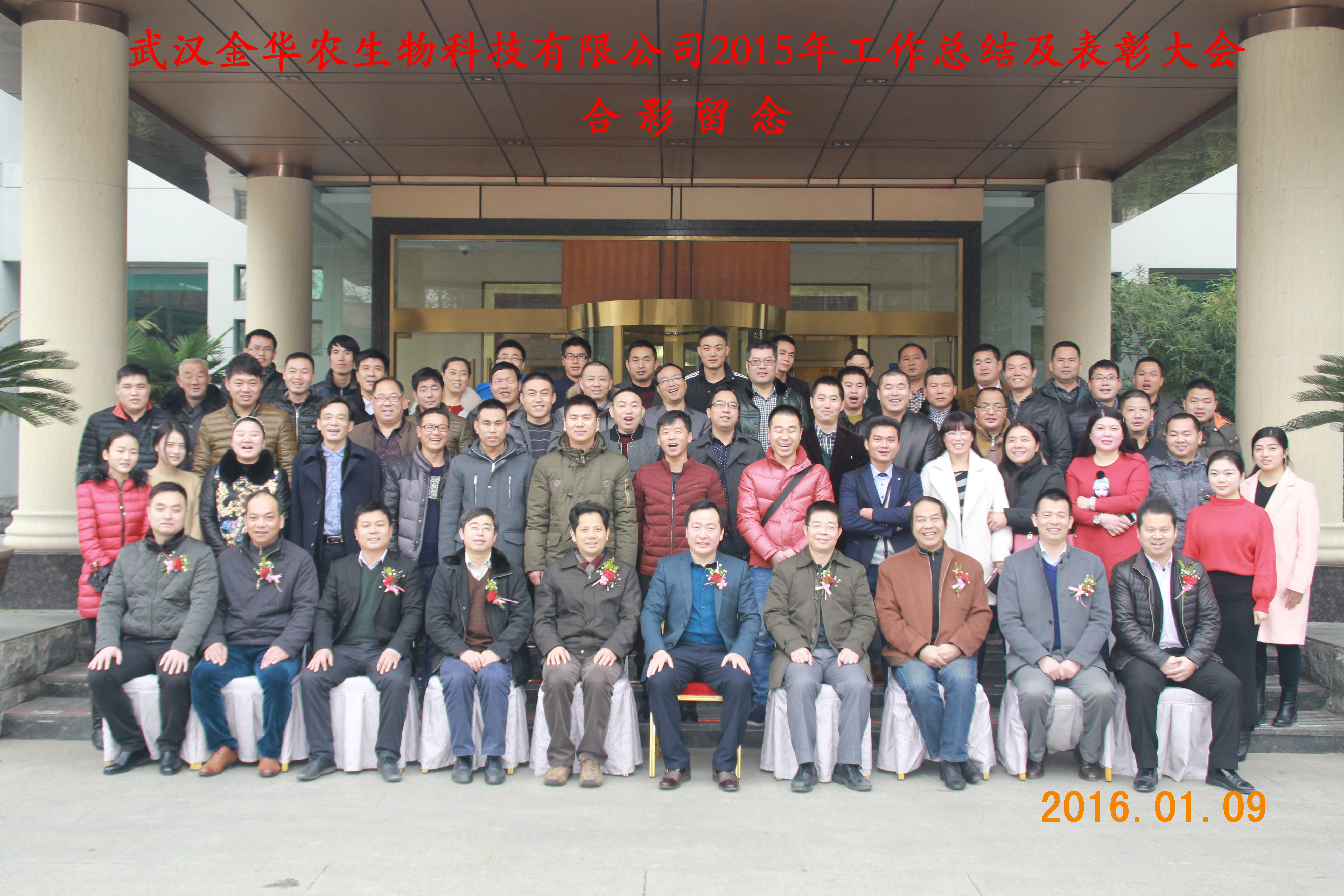 1月8日至12日,武漢金華農(nóng)生物科技有限公司2015年終工作總結(jié)及表彰大會在華中農(nóng)業(yè)大學國際學術(shù)交流中心隆重召開,會議總結(jié)了2015年的所取得的工作成績,表彰了市場銷售業(yè)績優(yōu)秀的員工,同時綜合上年度經(jīng)營目標及各區(qū)域成績,下達了2016年各區(qū)的銷售戰(zhàn)略任務,統(tǒng)一部署和安排了新一年的工作任務,此次會議取得圓滿成功!