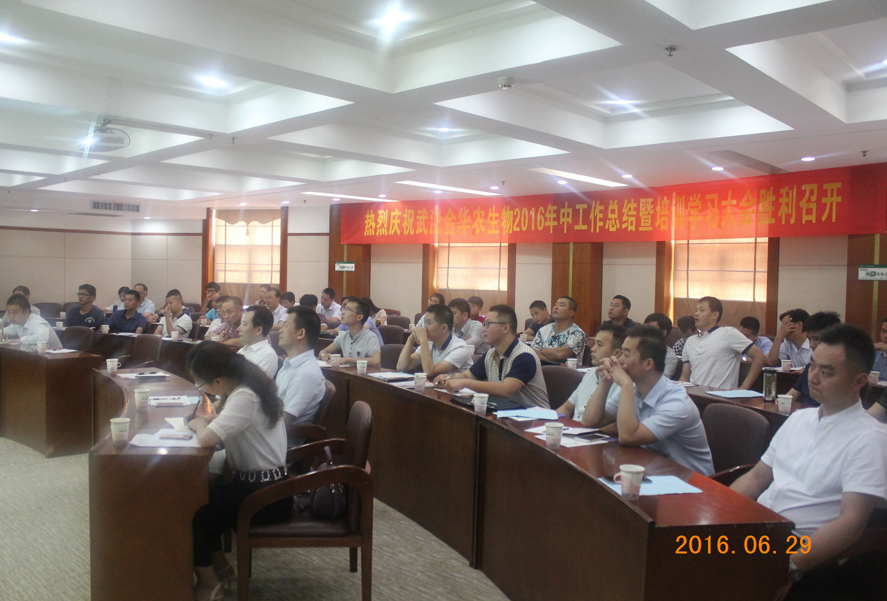 6月28日至30日,武漢金華農(nóng)生物科技有限公司2016年上半年工作總結(jié)暨培訓(xùn)學(xué)習(xí)會議在華中農(nóng)業(yè)大學(xué)國際學(xué)術(shù)交流中心勝利召開,來自全國18個省級區(qū)域的代表,帶著時間過半、任務(wù)超半的優(yōu)秀業(yè)績參加了會議。