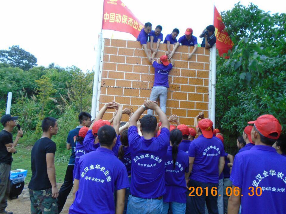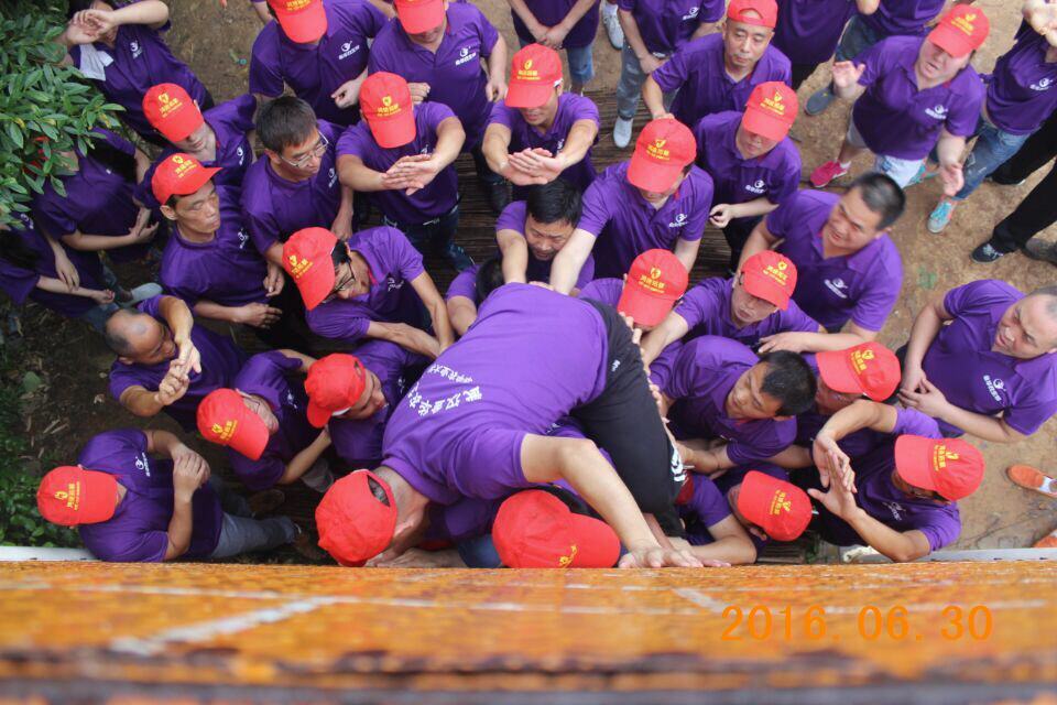 “金華農(nóng),加油!金華農(nóng),加油!金華農(nóng),必勝!金華農(nóng),必勝!……”踏著李奔、陳維利、劉傳忠、曹玉廣、唐友琦、王海峰、陳進調(diào)組成的第一層、第二層“人梯”,我們的團隊開始往上爬,風雨交加,墻面很滑,踩過兩道“人梯”,公司綜合辦主任黃凡第一個躍過墻面,回過頭來,他開始構(gòu)建“頂層”防線,一個、兩個、三個……越來越多的人在隊友的幫助下,成功翻越,我們的目標,是不落一人。