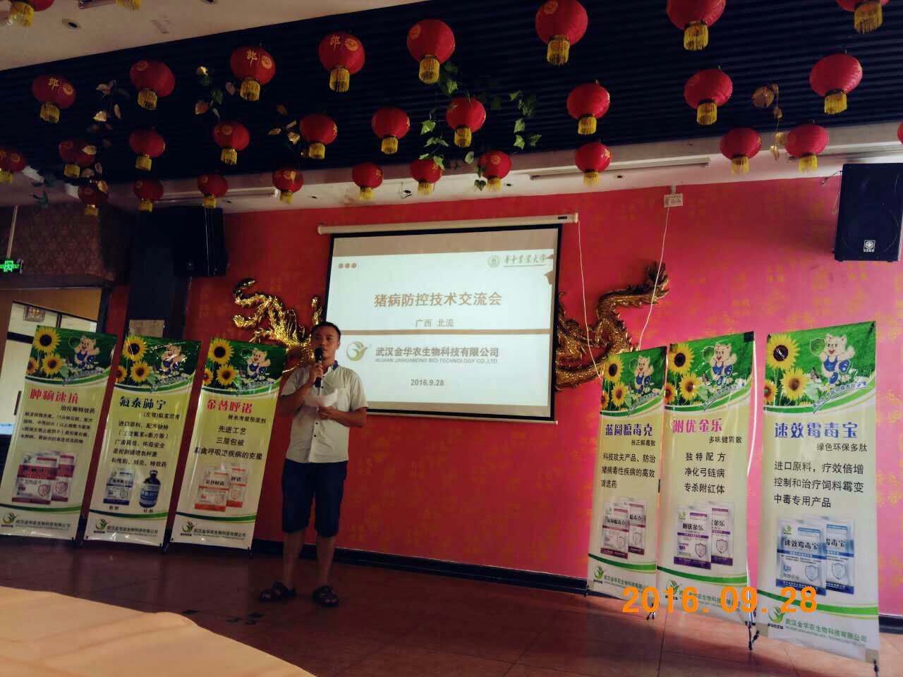 9月27-28日,公司廣西市場(chǎng)“秋冬季豬病防控研討會(huì)”勝利召開(kāi)!本次會(huì)議由公司領(lǐng)導(dǎo)常務(wù)副總徐巍博士做企業(yè)介紹及公司“一三五”戰(zhàn)略發(fā)展規(guī)劃,公司技術(shù)部唐友琦老師主講,玉林北流地區(qū)負(fù)責(zé)人曹玉廣經(jīng)理策劃與組織?,F(xiàn)場(chǎng)客戶(hù)40多人參加會(huì)議,雖然很多都是新客戶(hù),但是使用武漢金華農(nóng)產(chǎn)品后,都覺(jué)得產(chǎn)品質(zhì)量過(guò)硬,臨床效果十分顯著,豬病技術(shù)服務(wù)十分優(yōu)秀,會(huì)議最后大家激情都很高,贏得一片片喝彩掌聲,會(huì)議取得良好的效果,當(dāng)場(chǎng)收現(xiàn)金7萬(wàn)多元,預(yù)計(jì)后期拜訪總銷(xiāo)量達(dá)12萬(wàn)以上!祝賀優(yōu)秀新人-曹玉廣經(jīng)理首戰(zhàn)告捷!