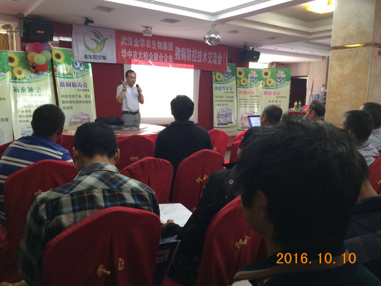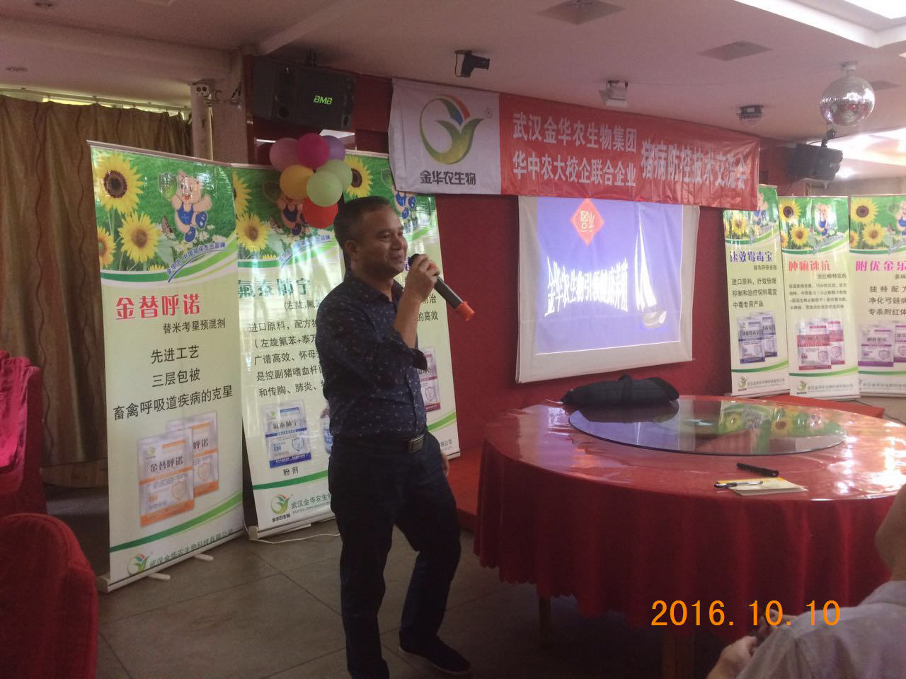 喜訊:2016年10月10日,武漢金華農(nóng)生物科技有限公司“秋冬季常見易發(fā)豬病研討會(huì)”在福建南平市南山鎮(zhèn)勝利召開,圓滿成功,收獲滿滿!公司常務(wù)副總經(jīng)理徐巍博士出席本次會(huì)議,公司技術(shù)部吳志良老師領(lǐng)銜主講,南平大區(qū)張?zhí)砹亟?jīng)理策劃組織。公司“附優(yōu)金樂”、“腫痢速抗”、“藍(lán)圓瘟毒克”、“金替呼諾”、“氟泰肺寧”、“弓球痢康”、“金普西林”、“華農(nóng)樂健”、“伊苯佳”等產(chǎn)品,在南平市場(chǎng)都深受廣大養(yǎng)殖戶的歡迎與信賴。本次會(huì)議現(xiàn)場(chǎng)氣氛熱烈、反響很好,會(huì)議共收到現(xiàn)金5萬(wàn)多元,預(yù)計(jì)后期跟蹤拜訪總銷量達(dá)20多萬(wàn)元!祝福武漢金華農(nóng)再創(chuàng)輝煌!全體武漢金華農(nóng)人加油!