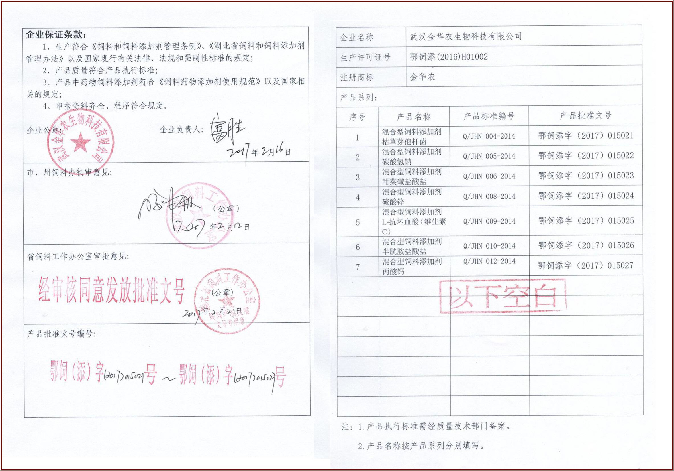熱烈祝賀武漢金華農(nóng)“飼料添加劑”批號(hào)申報(bào)成功