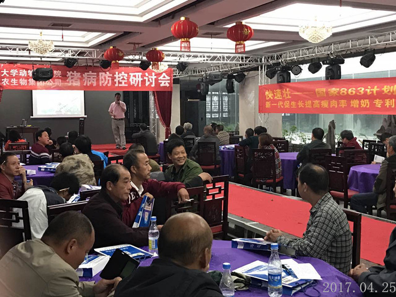4月25日,武漢金華農(nóng)春夏季規(guī)?;i場疾病研討會,在湖北天門市勝利召開,此次會議由公司戰(zhàn)略合作伙伴----湖北天門畜牧局獸藥經(jīng)銷公司趙總、顏老師組織與策劃,由湖北省大區(qū)團隊劉總、姚老師、陳經(jīng)理、江經(jīng)理負責(zé)疾病防控專題宣傳,來自該市120多家規(guī)?;B(yǎng)殖場客戶參加交流學(xué)習(xí),豬病問題現(xiàn)場互動解答,會議氣氛熱烈。