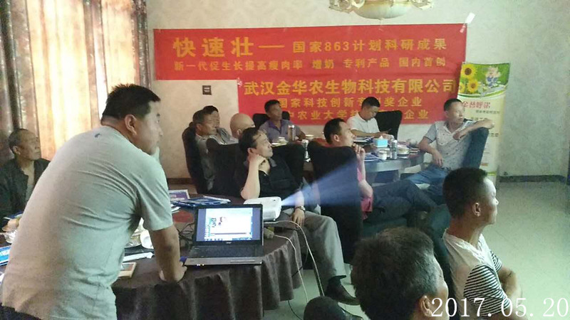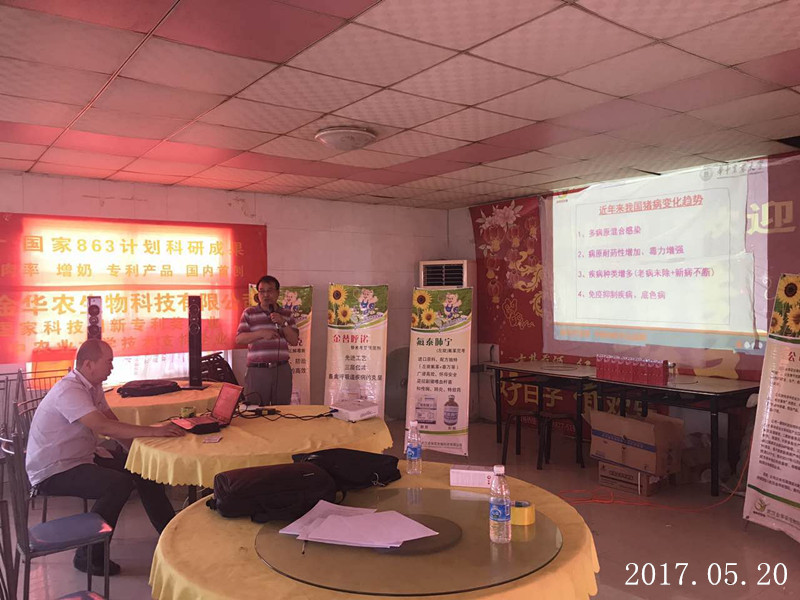 武漢金華農(nóng)生物自5月份以來,在河北、山東兩省大區(qū)市場連續(xù)舉辦6場豬病防控與研討交流會,會議舉辦十分成功,達到預期目的,收到預期效果!會議主題以母豬日常保健、仔豬的三個關鍵階段保健、生產(chǎn)育肥豬四大關鍵階段、夏季常見豬病的防控與治療展開。