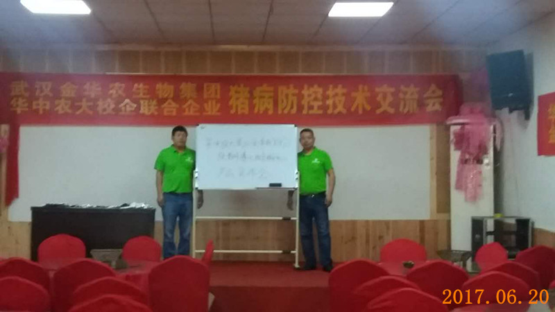 武漢金華農(nóng)生物貴州遵義豬病研討交流會(huì)議于6月20號圓滿成功召開,此次會(huì)議由大區(qū)負(fù)責(zé)人譚經(jīng)理組織與主辦,技術(shù)部原老師主講,會(huì)議著重研與交流了夏季豬易發(fā)病和多發(fā)病的防控與治療,其中仔豬黃白痢疾、腸炎、腹瀉,母豬的常規(guī)保健,夏季附紅細(xì)胞體病,霉菌毒素的凈化與防控等仍然是養(yǎng)豬戶夏季豬病永恒不變的問題。
