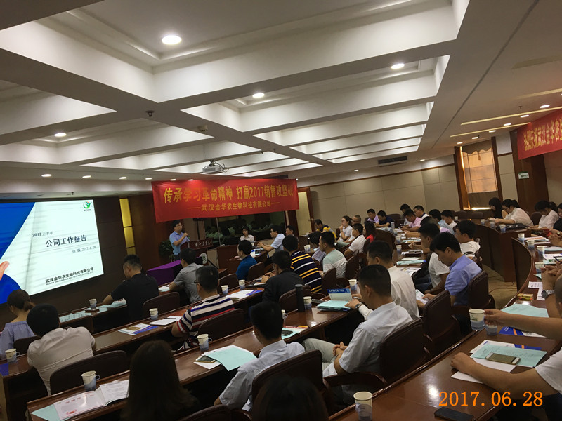 6月27日至30日,武漢金華農(nóng)生物科技有限公司2017年上半年工作總結(jié)暨下半年工作部署會(huì)議,在華中農(nóng)業(yè)大學(xué)成功召開(kāi)。來(lái)自全國(guó)各地的精英代表,齊聚獅子山下,向公司交上滿意的業(yè)績(jī)單。截止今年6月底,公司業(yè)績(jī)實(shí)現(xiàn)16.2%的增幅,銷售額達(dá)近五年來(lái)同期新高。