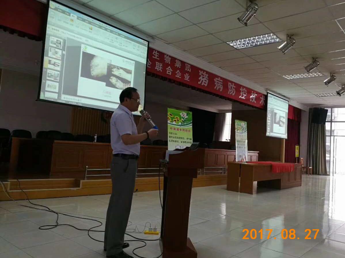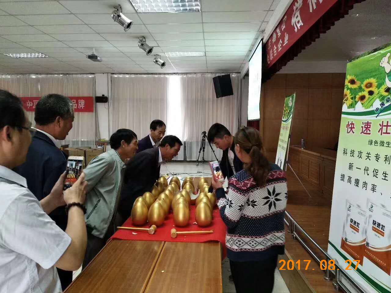 喜訊:8月27日,武漢金華農(nóng)生物2017年秋季豬病防控技術(shù)交流會(huì)議在甘肅市場取得圓滿成功。本次會(huì)議由甘肅大區(qū)楊勝利老師、楊斌經(jīng)理組織策劃,公司技術(shù)部吳志良老師主講。雖然當(dāng)天天降大雨,但依然阻擋不了各位豬場老板的熱情,早早地就有60多位趕到會(huì)議現(xiàn)場。通過本次豬病會(huì)議的交流,大家一致認(rèn)為:武漢金華農(nóng)產(chǎn)品質(zhì)量過硬、臨床療效顯著、企業(yè)美譽(yù)度高。