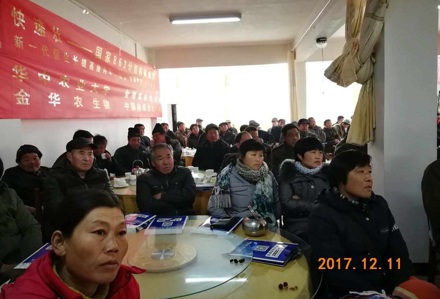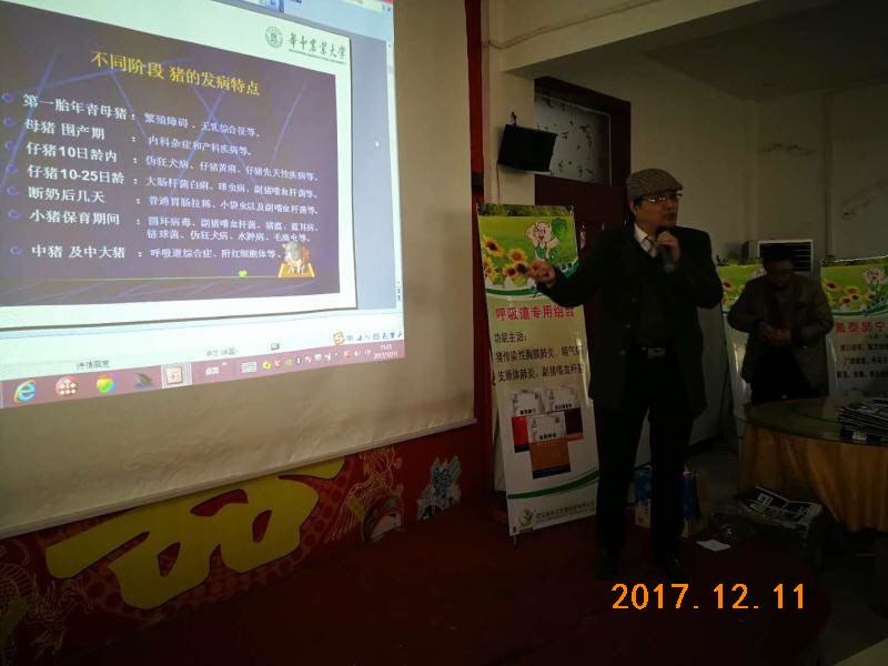 會(huì)議主題是以豬場(chǎng)冬季常見多發(fā)的“呼吸道疾病”深入分析與探討,專家教授對(duì)“藍(lán)耳呼吸道綜合癥”、“副豬嗜血桿菌病”、“傳染性胸膜肺炎”、“豬流感”、“支原體肺炎”等困擾養(yǎng)豬戶難題做詳細(xì)解答,怎么預(yù)防呼吸道?怎么治療呼吸道?如何防控繼發(fā)感染,以及急性心肌炎癥導(dǎo)致死亡?呼吸道經(jīng)典組方“金替呼諾+氟泰肺寧+華農(nóng)樂健”表現(xiàn)突出效果,受到在場(chǎng)的養(yǎng)豬戶的一直認(rèn)可和贊美!