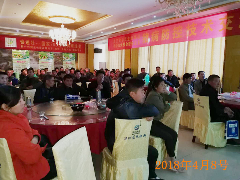 2018年4月8日,武漢金華農(nóng)生物安徽霍邱縣豬病防控暨技術(shù)交流會勝利召開!公司副總經(jīng)理徐巍博士應(yīng)邀出席并參加。本次會議由安徽區(qū)域戰(zhàn)略合作伙伴黃總和安徽大區(qū)吳先鋒經(jīng)理共同策劃與組織,由華中農(nóng)業(yè)大學(xué)動物醫(yī)學(xué)院帥起義教授主講,參會豬場老板達(dá)到80多人,會場氣氛熱烈而友好,會議效果良好,武漢金華農(nóng)產(chǎn)品質(zhì)量和臨床療效受到養(yǎng)殖戶的高度認(rèn)可與贊美。雖然該地區(qū)是新市場,第一次組織會議,但現(xiàn)場訂貨高達(dá)20多萬元,后期跟蹤服務(wù)高達(dá)40多萬元,遠(yuǎn)超預(yù)期。祝賀安徽大區(qū)首場豬病會議旗開得勝!好獸藥,武漢金華農(nóng)造!!
