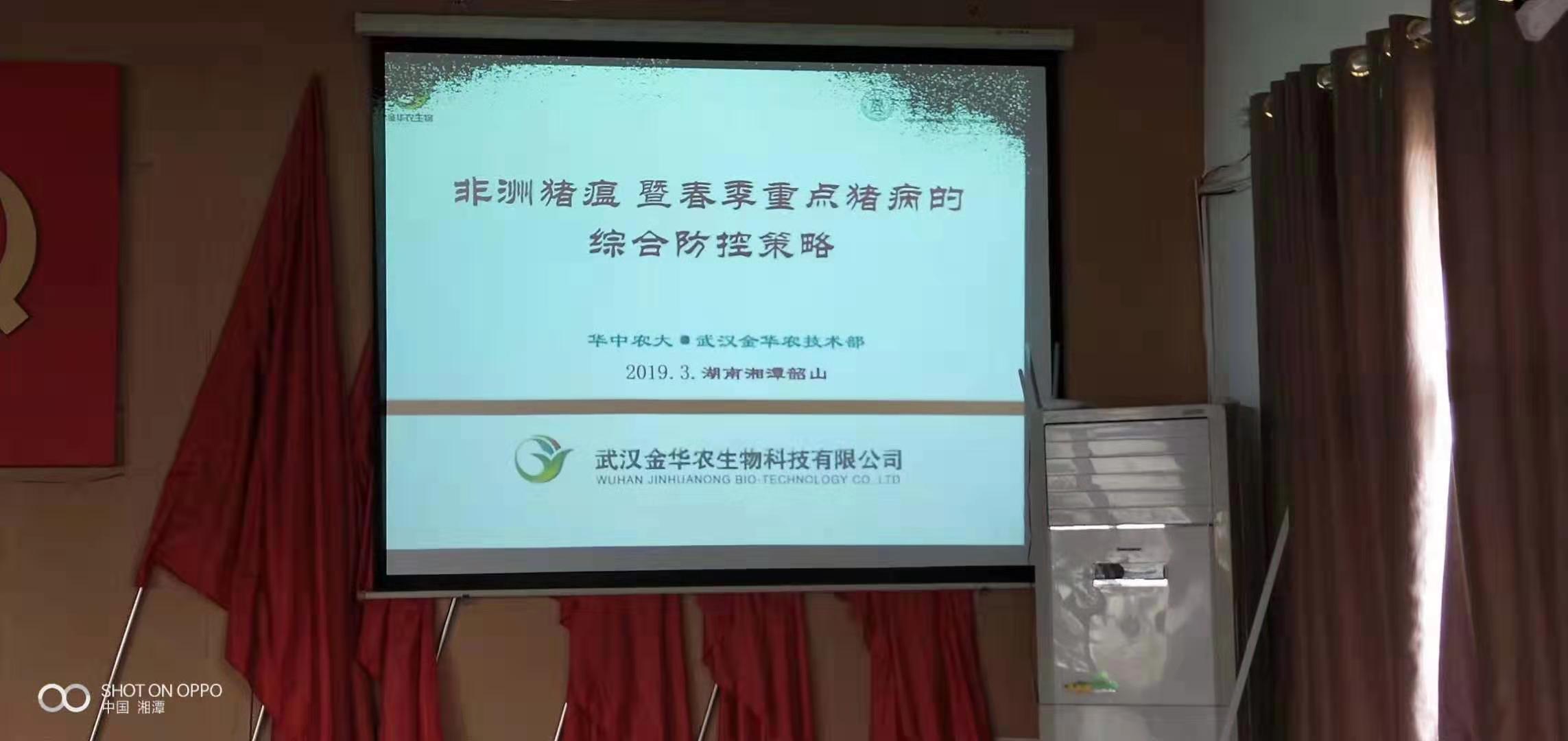 ? ?本站訊(小麗、馬楠)2019年3月11日,武漢金華農(nóng)生物“春季豬病防控暨非洲豬瘟研討會(huì)”在湖南韶山銀田鎮(zhèn)政府會(huì)議室勝利召開(kāi),公司運(yùn)營(yíng)部郭昌盛老師出席會(huì)議,技術(shù)部吳志良老師主講,技術(shù)部原金記老師跟蹤拜訪,湖南大區(qū)經(jīng)理胡簇經(jīng)理全權(quán)組織與策劃!