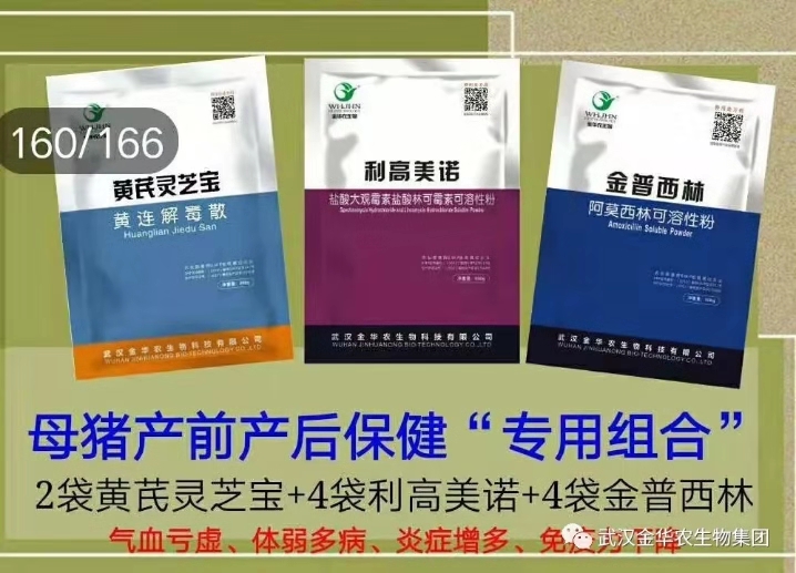 母豬產后,氣血虧虛、體弱多病、免疫力下降、肌肉損傷較大,泌尿生殖道炎癥明顯增多,不發(fā)情,配不上,返情率高,產生免疫抑制及產后綜合應激癥,母豬產前產后保健專用組合:黃芪靈芝寶1000 g +利高美諾500 g +金普西林500 g,拌料1000斤,連續(xù)飼喂5-7天,治療明顯,效果突出,受到在場的養(yǎng)豬戶的一直認可和贊美!