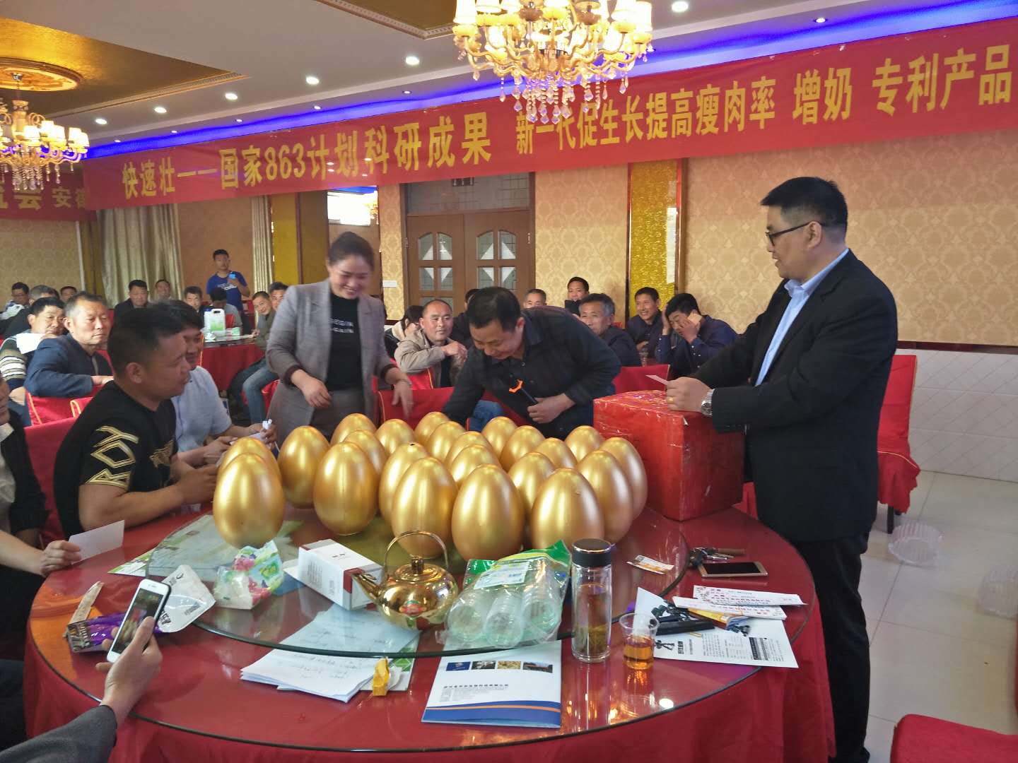 會議主題3: 母豬產(chǎn)后,氣血虧虛、體弱多病、免疫力下降、肌肉損傷較大,泌尿生殖道炎癥明顯增多,不發(fā)情,配不上,返情率高,產(chǎn)生免疫抑制及產(chǎn)后綜合應(yīng)激癥,母豬產(chǎn)前產(chǎn)后保健專用組合:黃芪靈芝寶500g+利高美諾500g+金普西林500g,拌料1000斤,連續(xù)飼喂5-7天,治療明顯,效果突出,受到在場的養(yǎng)豬戶的一直認(rèn)可和贊美!