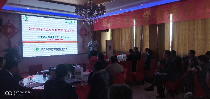 2019年4月8日,武漢金華農(nóng)生物集團(tuán)應(yīng)安徽省六安畜牧獸醫(yī)局的邀請,在六安地區(qū)舉辦“非洲豬瘟的防控措施”暨“規(guī)?;i場常見病的預(yù)防與治療”豬病研討學(xué)習(xí)會議,此次會議非常成功,參加會議養(yǎng)殖場60家,養(yǎng)豬戶熱情十分高漲,學(xué)習(xí)積極踴躍,非瘟知識普及到位,豬病防控與治療宣傳深入,會議取得很好的效果。