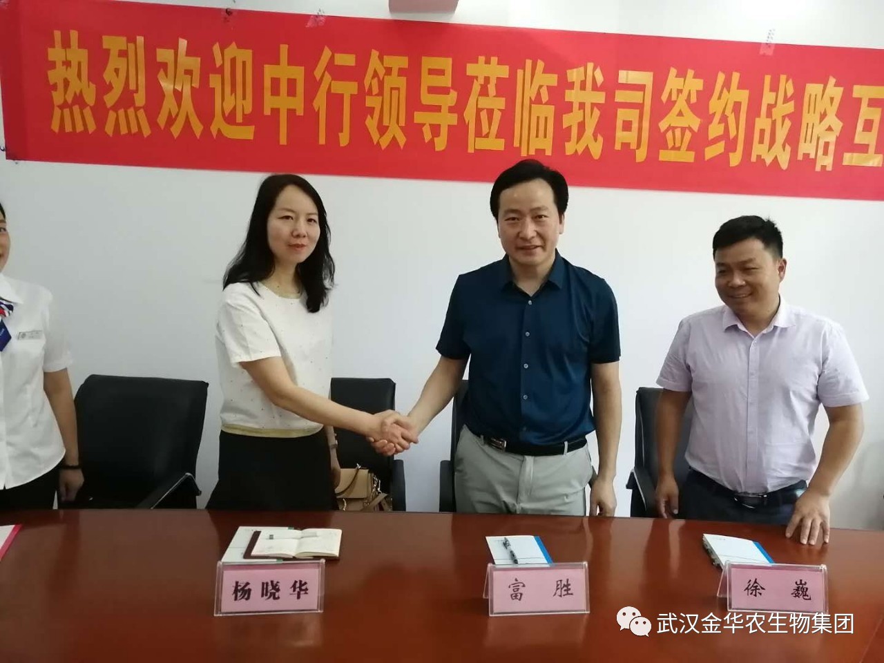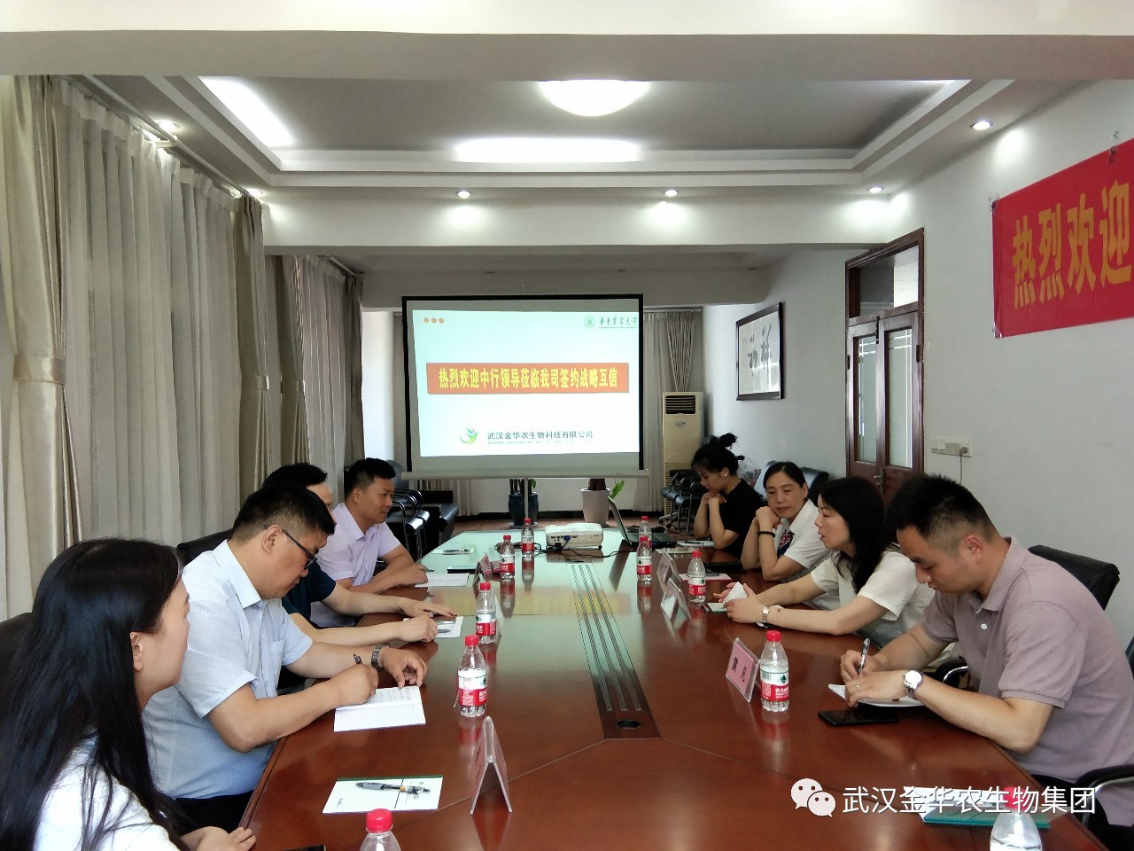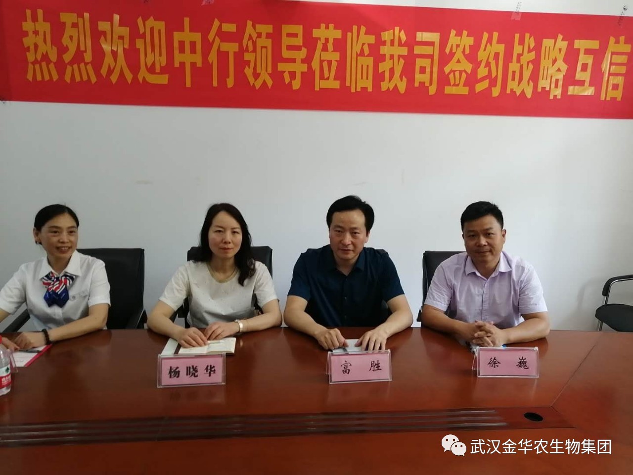 2019年6月6日上午,中國銀行武漢東湖新技術開發(fā)區(qū)分行行長楊曉華、華農支行行長余陽一行蒞臨我司參觀考察,就深化銀企合作、共建互信互惠戰(zhàn)略合作伙伴關系開展會談。
