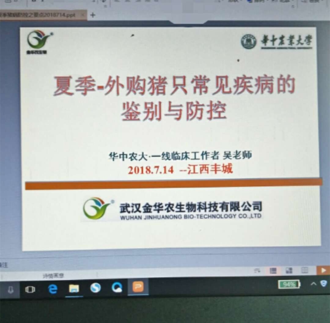 7月14日,由江西大利牧業(yè)(母豬存欄量萬頭)熊總組織,江西大區(qū)蔡經(jīng)理主持,技術(shù)部吳老師主講,武漢金華農(nóng)集團養(yǎng)豬技術(shù)交流培訓(xùn)會在江西豐城縣勝利召開。