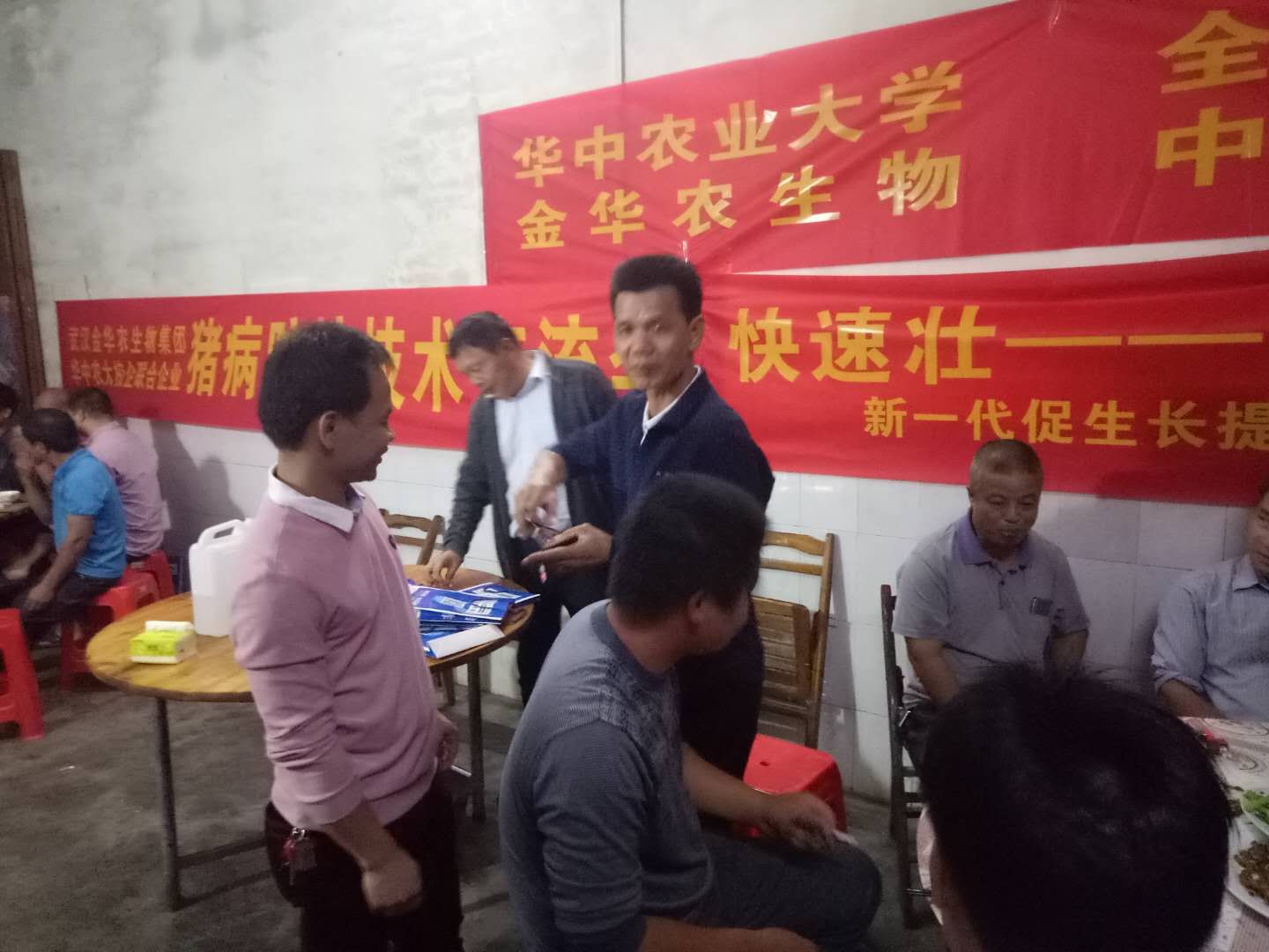 2018年10月16~18日,武漢金華農(nóng)生物集團“廣西專屬圓桌會議”連續(xù)3場在廣西玉林博白地區(qū)拉開帷幕,此次連續(xù)3場圓桌會議,形式多樣,內(nèi)容新穎,學(xué)習(xí)輕松,接地氣交流,養(yǎng)豬戶效果反饋明顯。公司廣西辦事處龐總負(fù)責(zé)組織、策劃和宣傳,技術(shù)部原老師主講和技術(shù)跟蹤服務(wù),區(qū)域銷售陸經(jīng)理、劉經(jīng)理、鄧經(jīng)理參加本次會議,并負(fù)責(zé)區(qū)域銷售計劃的落實。第一場會議聽課豬場老板50多人,會議達到預(yù)期目的,豬病知識授課圓滿,養(yǎng)豬戶學(xué)習(xí)積極認(rèn)真。