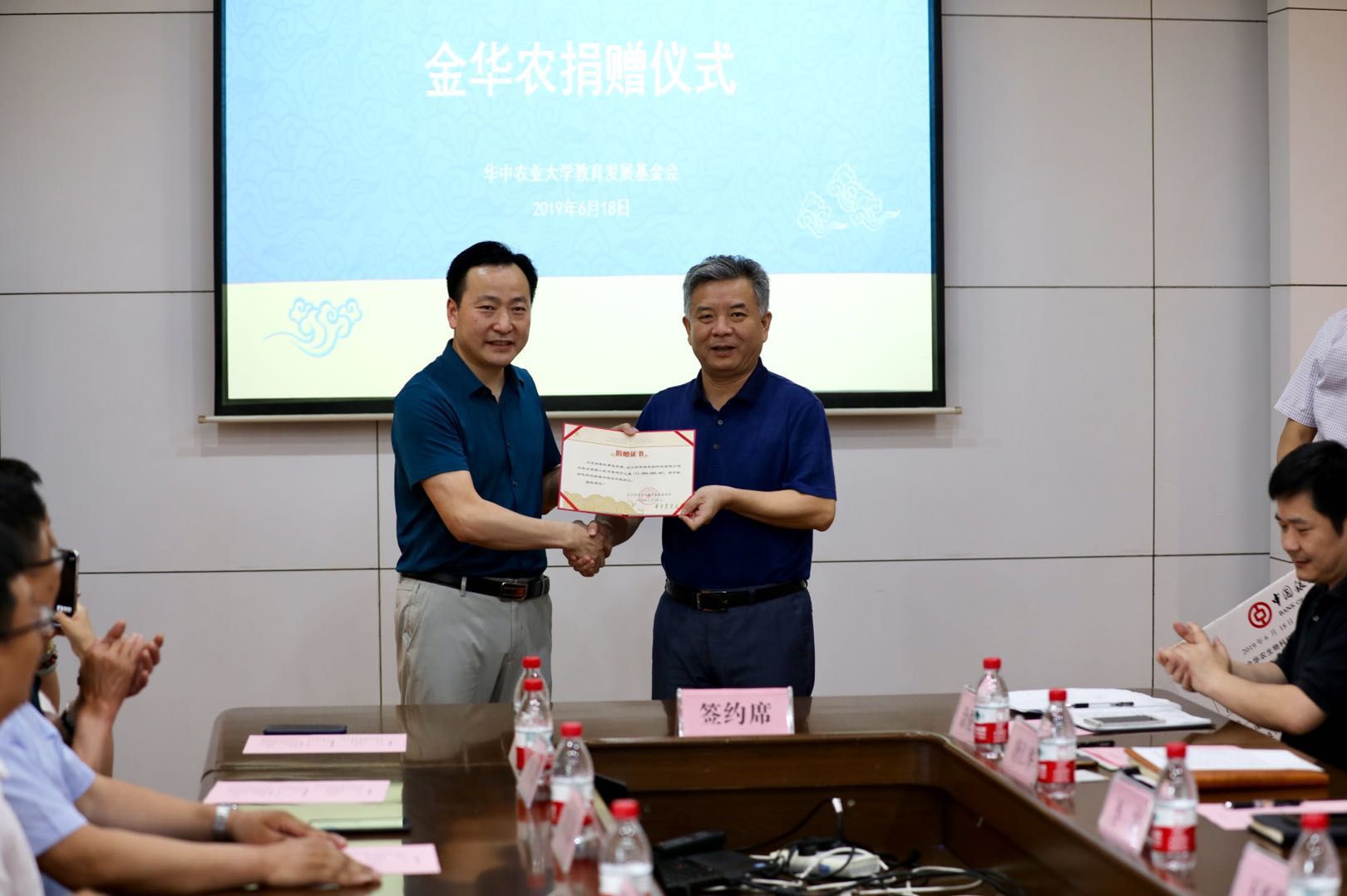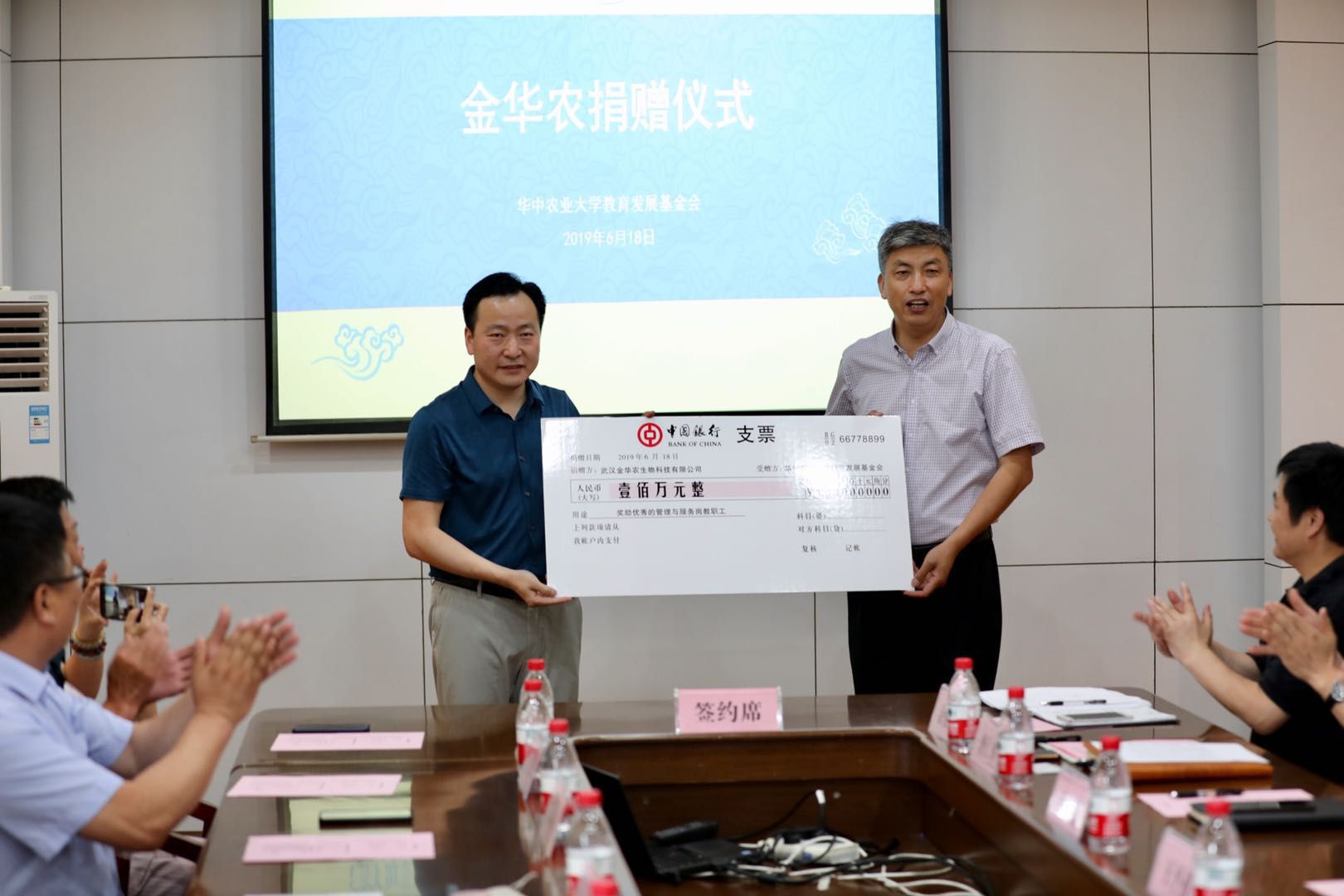 ? ??2019年6月18日,華中農(nóng)業(yè)大學(xué)“獎教金”設(shè)立儀式在該校行政樓會議室舉行,此次,武漢金華農(nóng)生物科技有限公司向該校捐贈100萬元,用于獎勵華中農(nóng)業(yè)大學(xué)優(yōu)秀的管理與服務(wù)崗教職工。